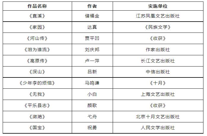 新時(shí)代文學(xué)攀登計(jì)劃首期支持項(xiàng)目名單