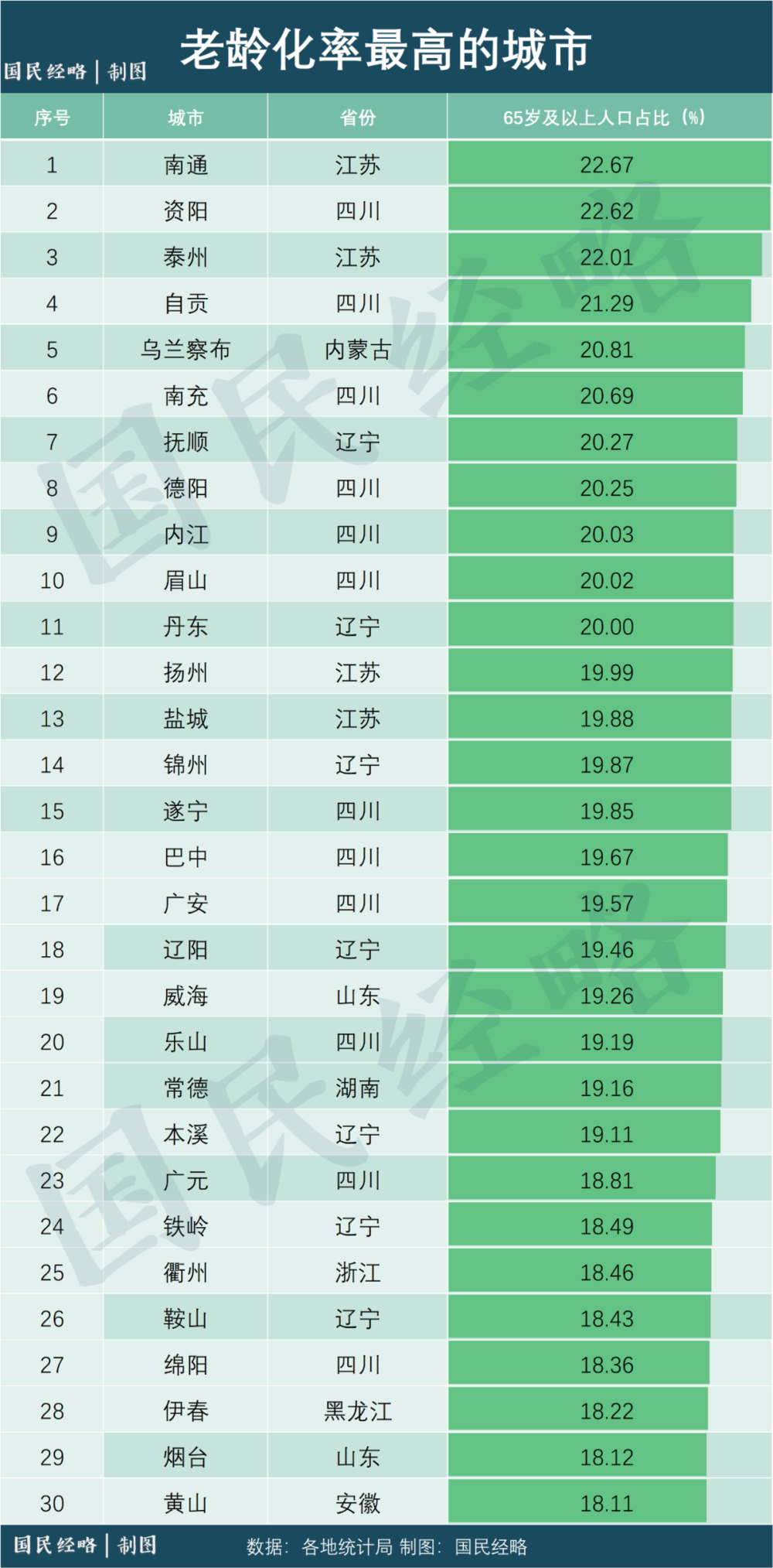 根據七普,2020年,江蘇南通老齡化率高達22.67%,超過東北所有地市,位居全國第一。