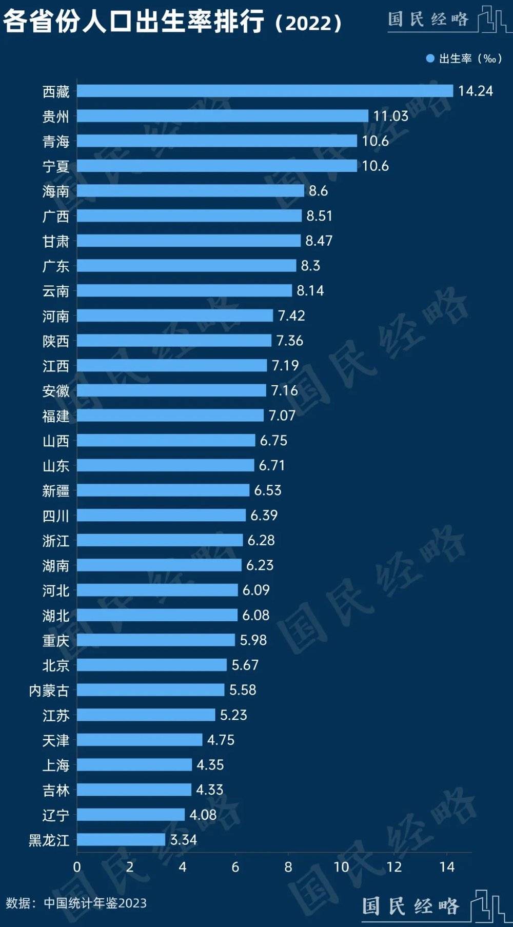 不難看出,出生率最高的省份——西藏、寧夏、青海、貴州,均位于西部欠發(fā)達地區(qū),歷來都是生育率最高的地方。
