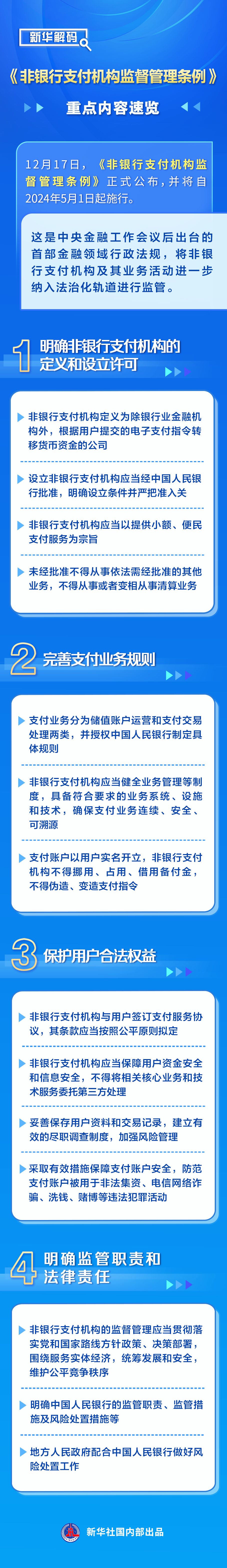 新華社北京12月17日電 題:這部法規(guī)事關(guān)非銀行支付,一起來(lái)看關(guān)鍵內(nèi)容