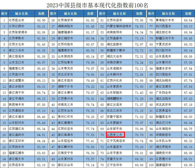 12月19日,競(jìng)爭(zhēng)力智庫(kù)、北京中新城市規(guī)劃設(shè)計(jì)研究院等機(jī)構(gòu)在北京聯(lián)合發(fā)布了《中國(guó)城市基本現(xiàn)代化監(jiān)測(cè)報(bào)告2023》(以下簡(jiǎn)稱《報(bào)告》),揭曉了“2023中國(guó)地級(jí)市基本現(xiàn)代化指數(shù)前100名(含副省級(jí)城市,下同)”“2023中國(guó)縣級(jí)市基本現(xiàn)代化指數(shù)前100名”。