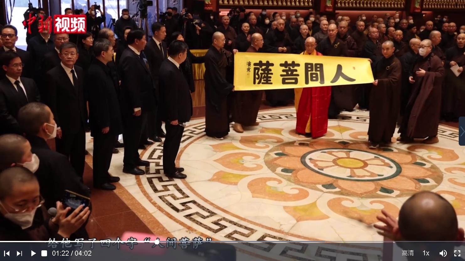 【解說(shuō)】星云法師圓寂后,中國(guó)佛教協(xié)會(huì)會(huì)長(zhǎng)演覺長(zhǎng)老寫下了“人間菩薩”四個(gè)字。
