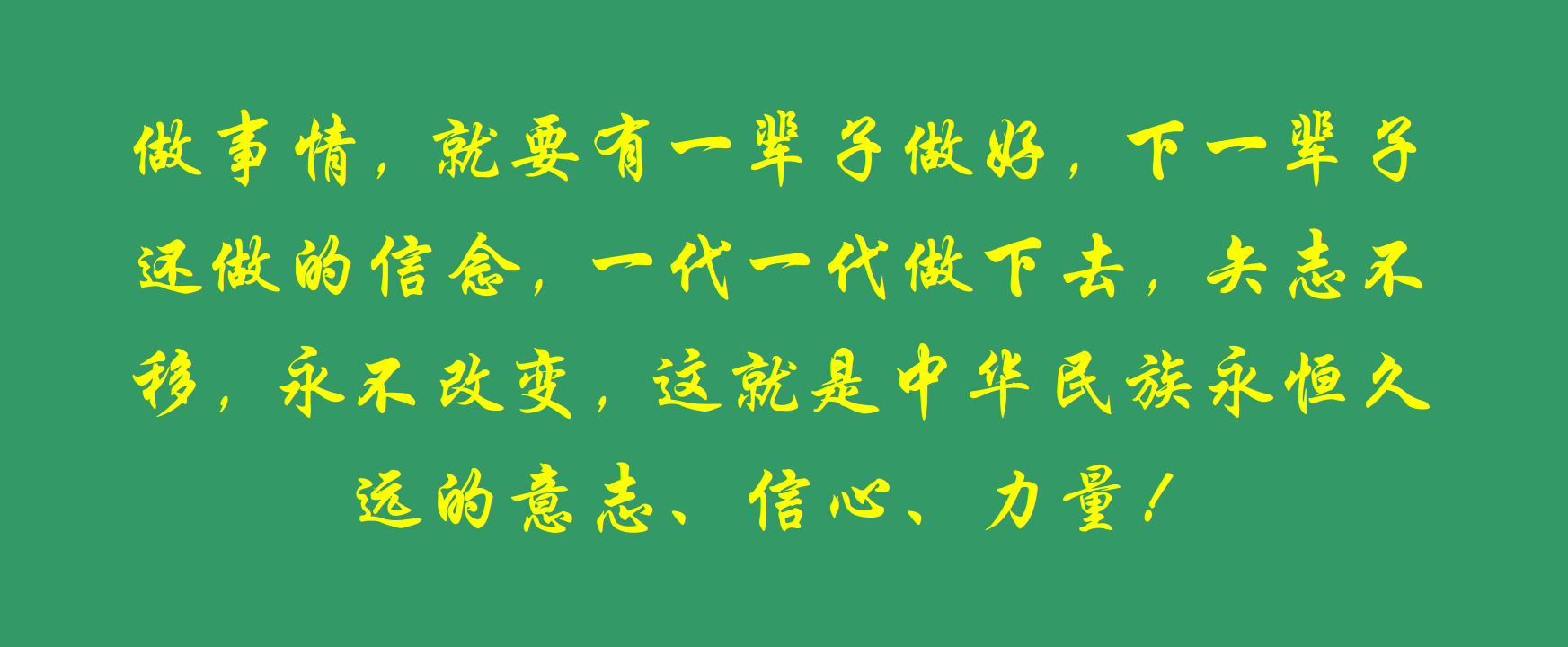 做事情,就要有一輩子做好,下一輩子還做的信念,一代一代做下去,矢志不移,永不改變,這就是中華民族永恒久遠的意志、信心、力量!