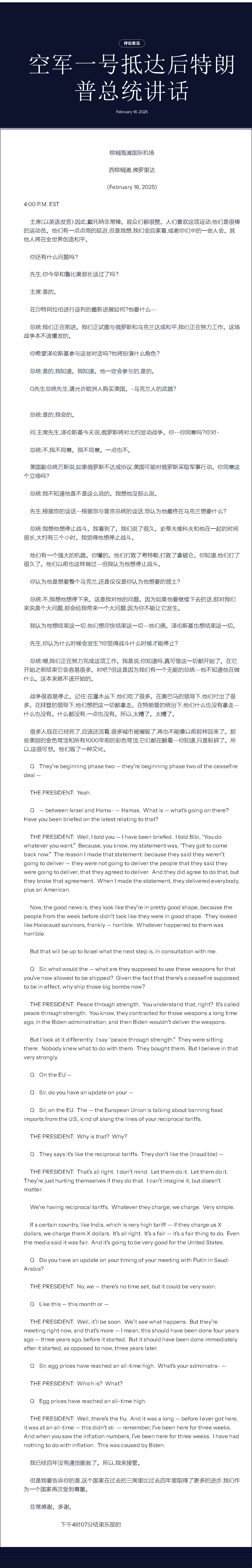 無論從那個角度和空間反思和決定,特朗普的最新講話,已經(jīng)給解決烏克蘭問題定調(diào),這是拜登政府的荒謬和錯誤,烏克蘭負(fù)有責(zé)任,本不應(yīng)該發(fā)生,必須盡快結(jié)束沖突!