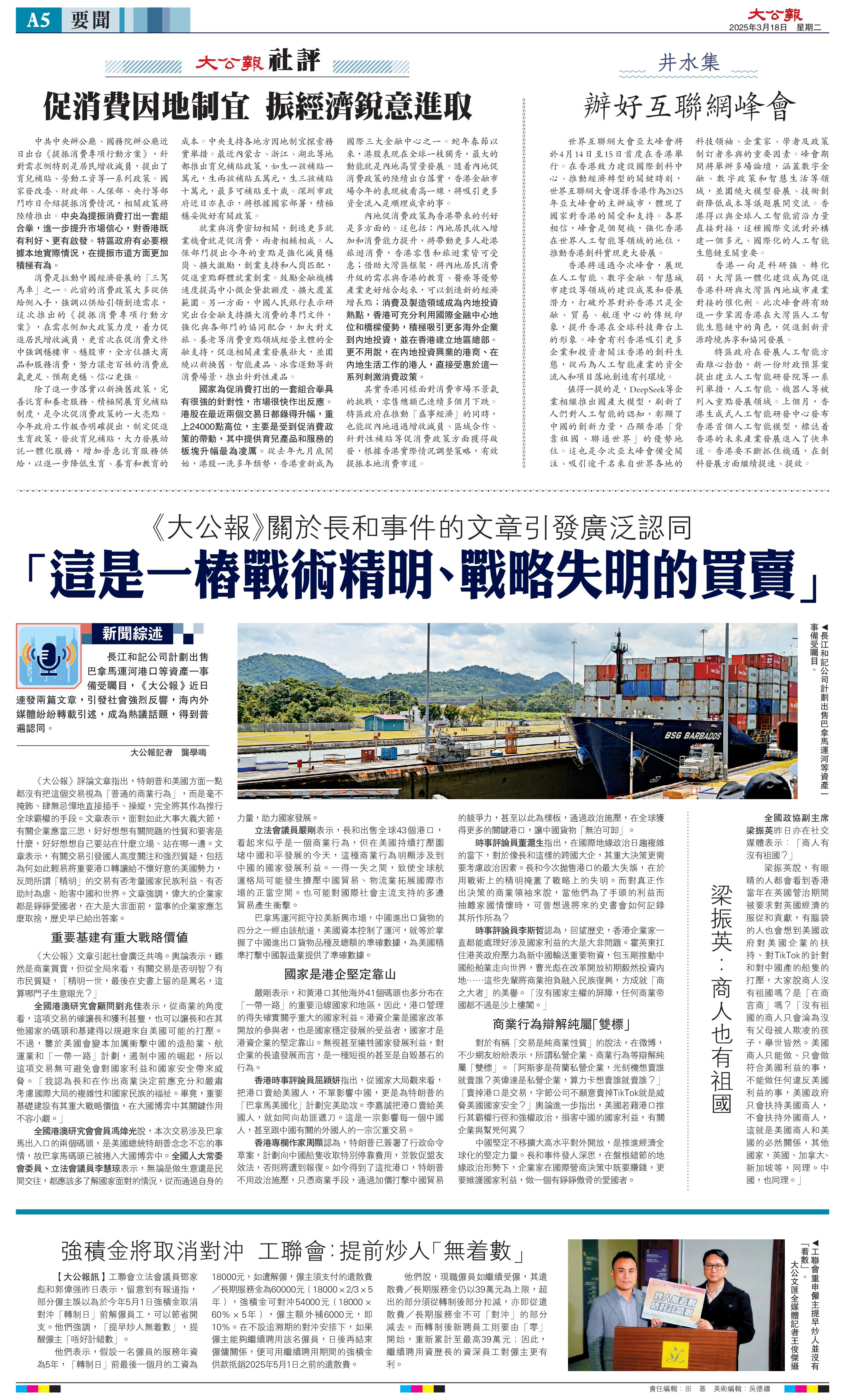 并稱,李嘉誠(chéng)這一舉動(dòng)更像是在給美國(guó)霸權(quán)遞刀子,同時(shí)對(duì)其發(fā)出質(zhì)問(wèn)“是否在助紂為虐”,此外,香港《大公報(bào)》再次發(fā)表文章,文章中提出了五個(gè)問(wèn)題來(lái)質(zhì)疑李嘉誠(chéng)。