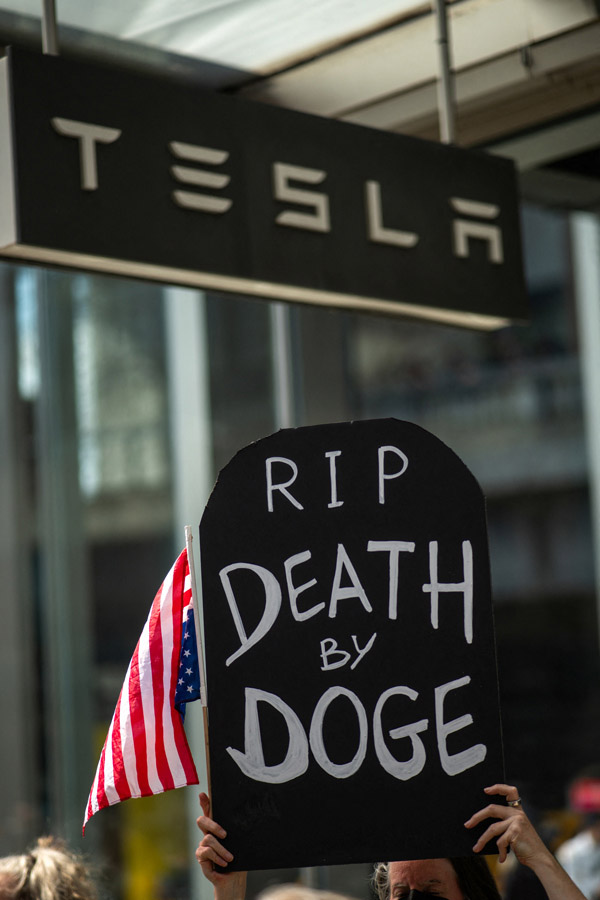 但這種“大刀闊斧”的改革也引發(fā)強(qiáng)烈不滿,使馬斯克的特斯拉公司成為眾矢之的。3月29日,一場(chǎng)聲勢(shì)浩大的“打倒特斯拉”(Tesla Takedown)抗議活動(dòng)在美國、加拿大以及歐洲上演。成千上萬名抗議者走上街頭,反對(duì)馬斯克及其領(lǐng)導(dǎo)的DOGE削減人道主義援助、關(guān)閉聯(lián)邦機(jī)構(gòu)并解雇政府雇員的舉措。