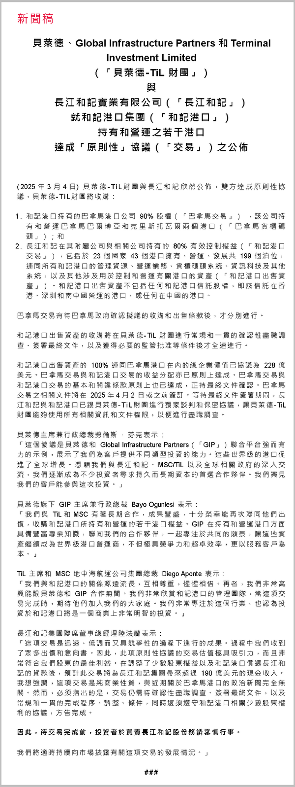一個多月前,長和宣布與美國貝萊德牽頭的財團(tuán)達(dá)成港口出售原則性協(xié)議時,恐怕沒想到會觸發(fā)一場“輿論核爆”。