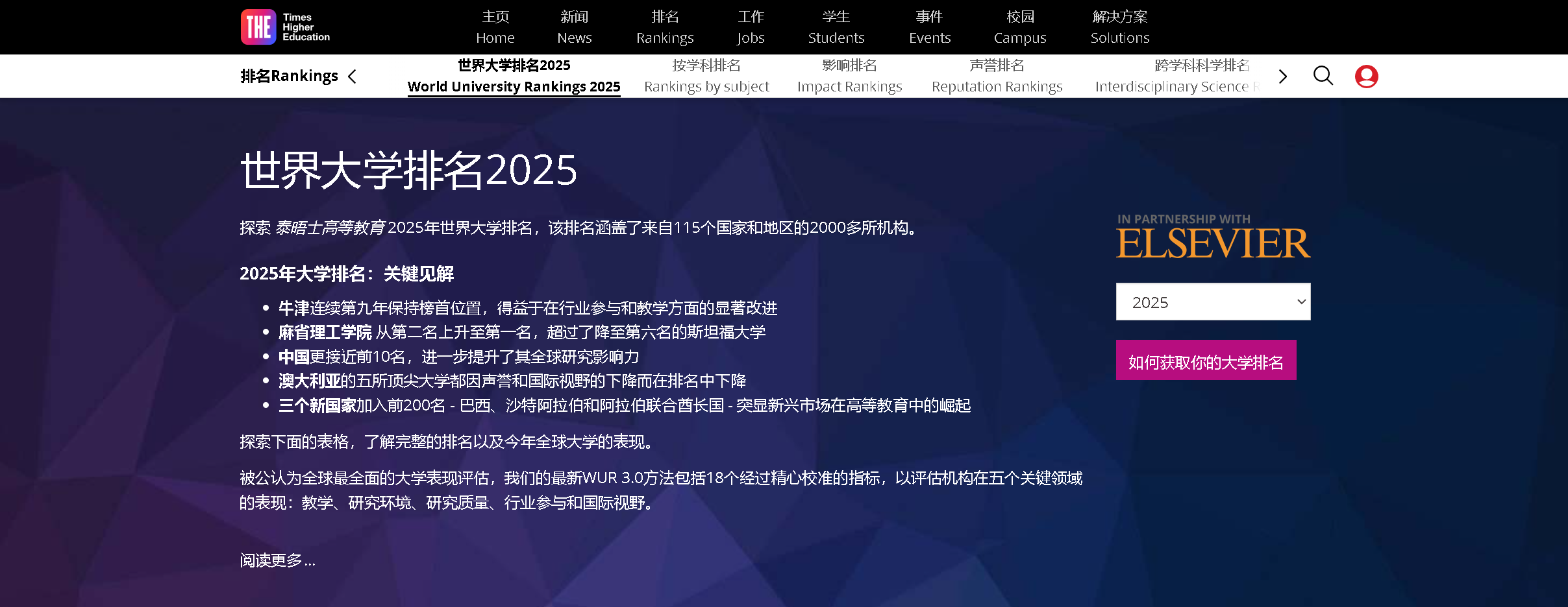 探索 泰晤士高等教育 2025年世界大學(xué)排名,該排名涵蓋了來自115個(gè)國家和地區(qū)的2855所機(jī)構(gòu)。