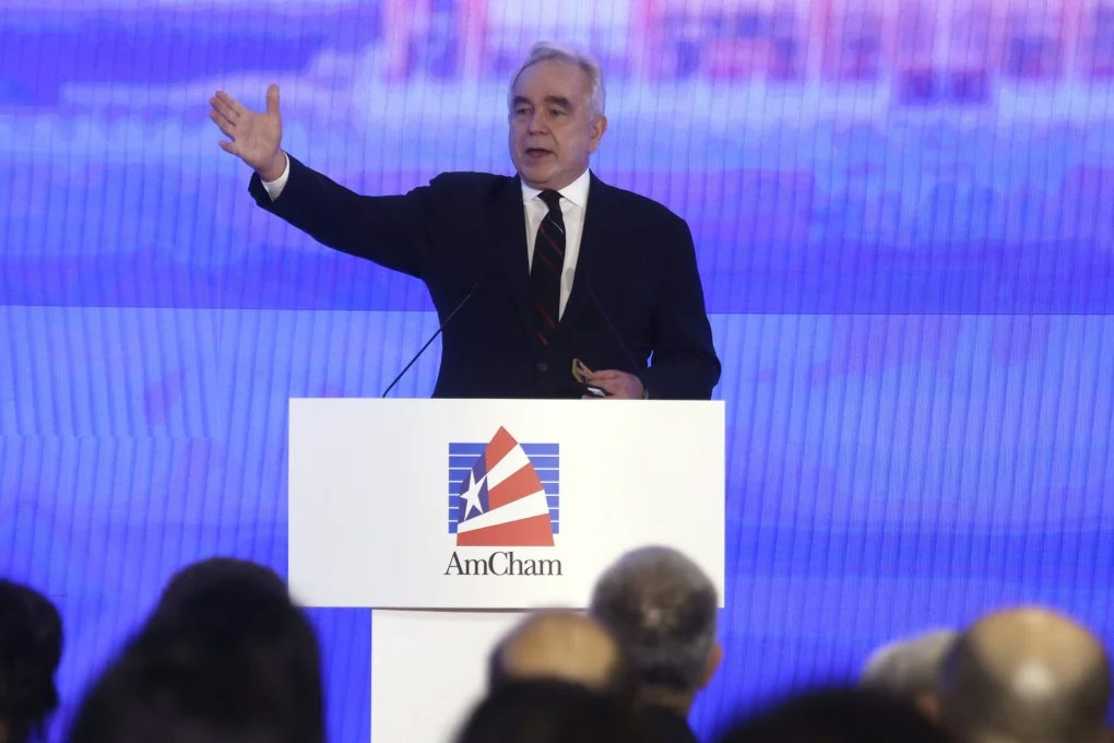 4月23日,美國(guó)前常務(wù)副國(guó)務(wù)卿庫(kù)爾特·坎貝爾,參加由香港美國(guó)商會(huì)主辦的研討會(huì)活動(dòng),并發(fā)言。 《南華早報(bào)》