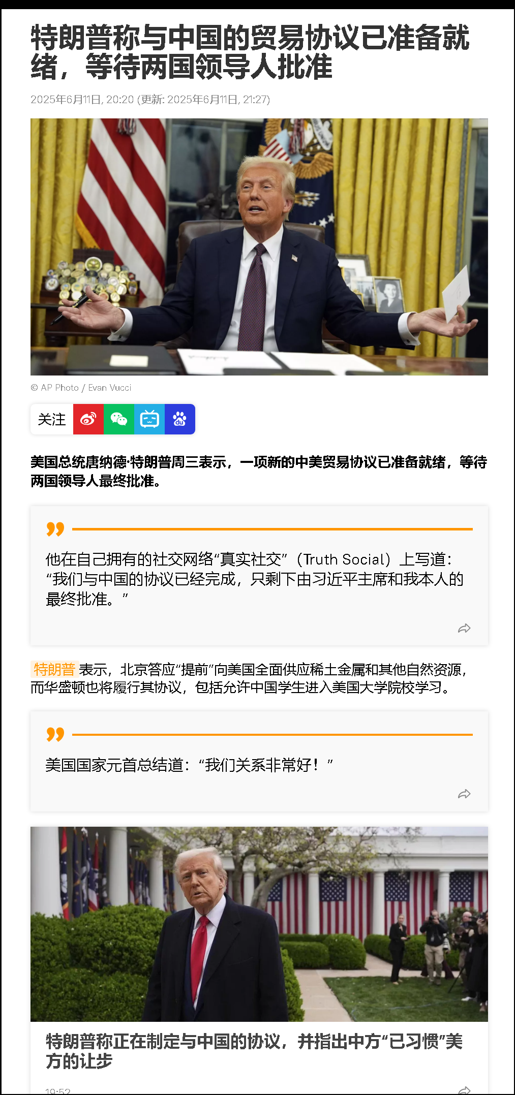 中國人是講誠信守信用的,美國必須改掉過去那些臭毛病,兩國的事情相互成就公平合作,再大的事情都能解決,美國并不吃虧!