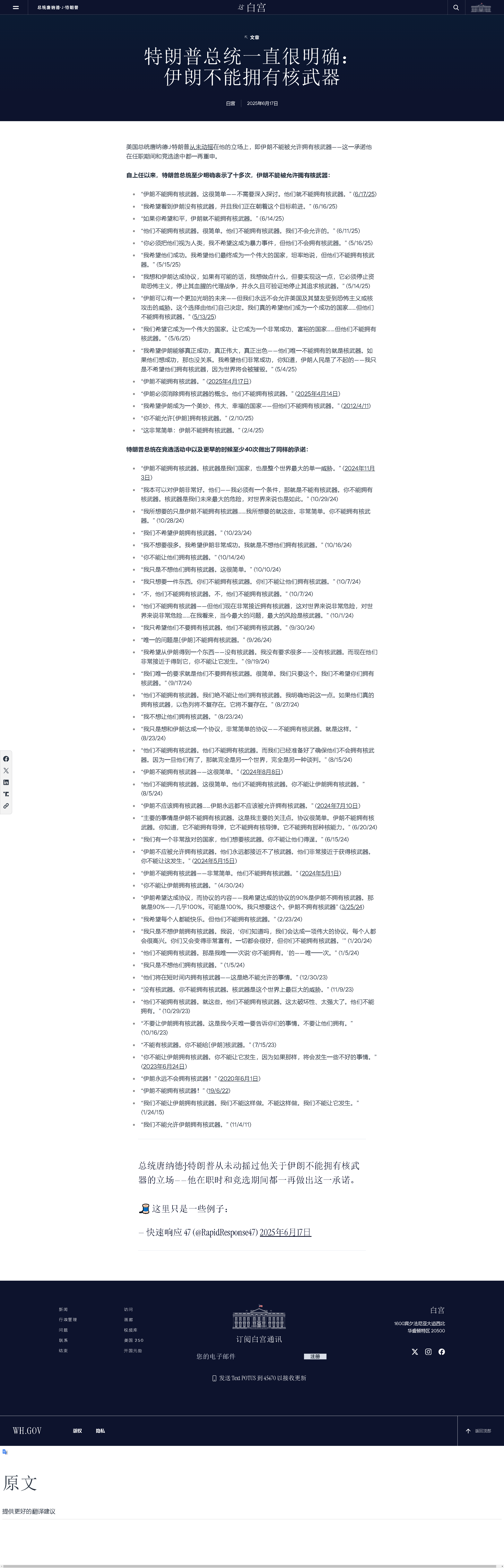 阻止伊朗獲得核武器一直是歷任美國政府和其他西方國家的目標。自今年4月以來,美伊雙方已在阿曼斡旋下進行了五輪核談判,但未取得實質(zhì)性突破。美國希望伊朗徹底終止可用于制造核武器的鈾濃縮項目,而伊朗則堅稱要保留該項目,并要求美方解除制裁,作為其在核計劃上做出任何讓步的交換條件。因以色列6月13日突襲,美伊原定于15日舉行的第六輪談判被取消。