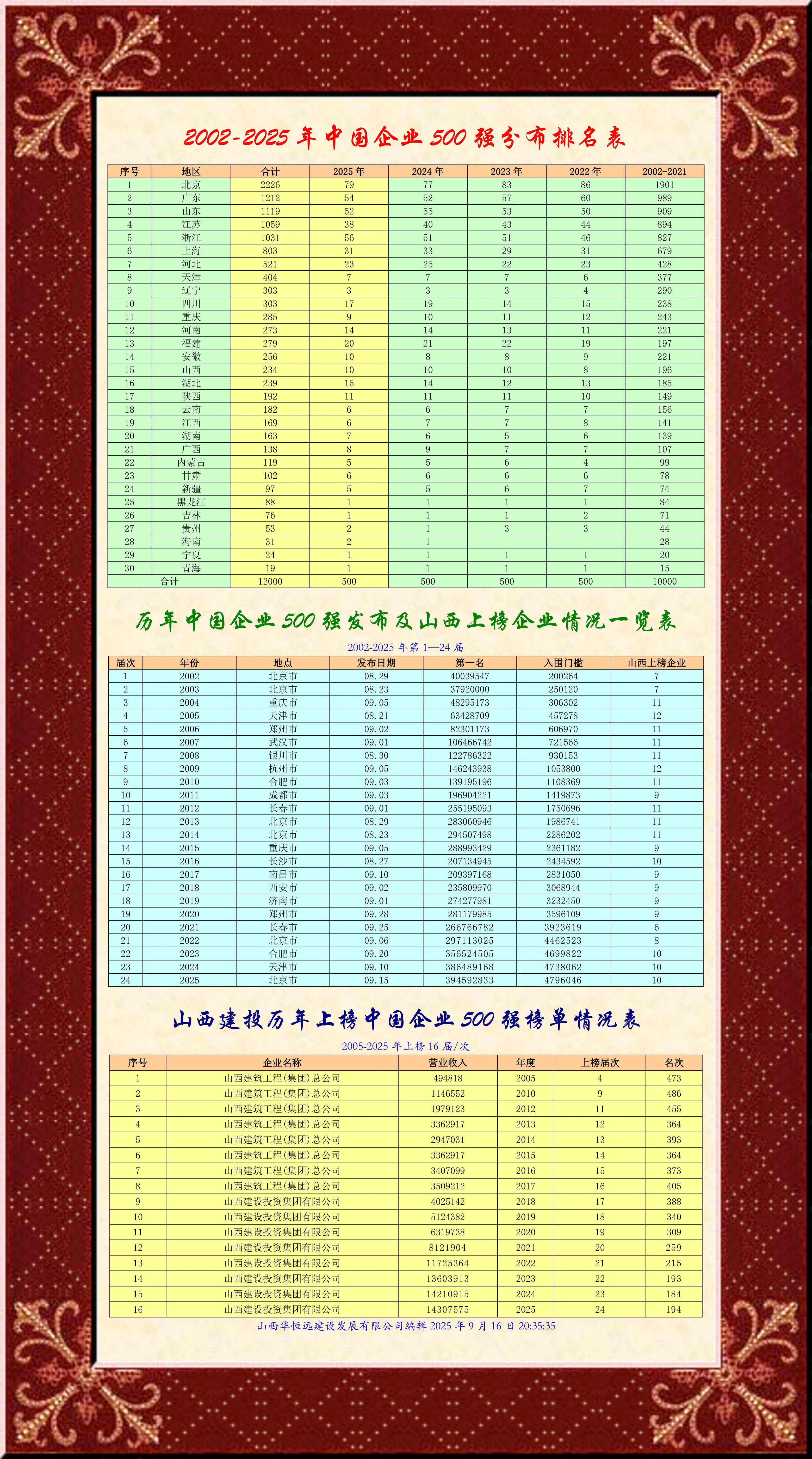 【學習園地】2002-2025中國企業(yè)500強分布排名表