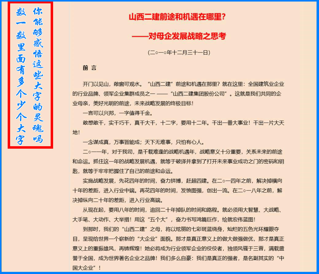 來(lái)到人世間,一人為大,二人為天,這是與生俱來(lái)的靈感和感悟。所以我的文章離不了這個(gè)“大”字,大格局,大境界,大覺悟,大手筆,大魄力!