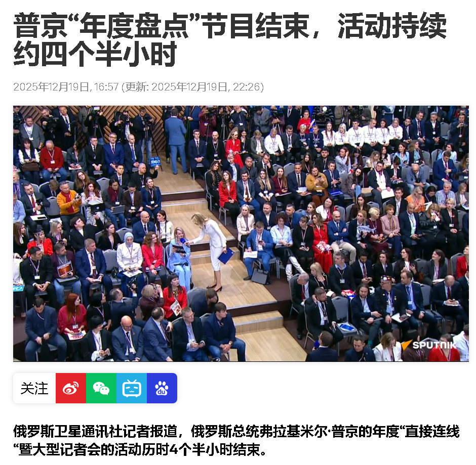 普京年度大型記者會結(jié)束,共歷時4個多小時