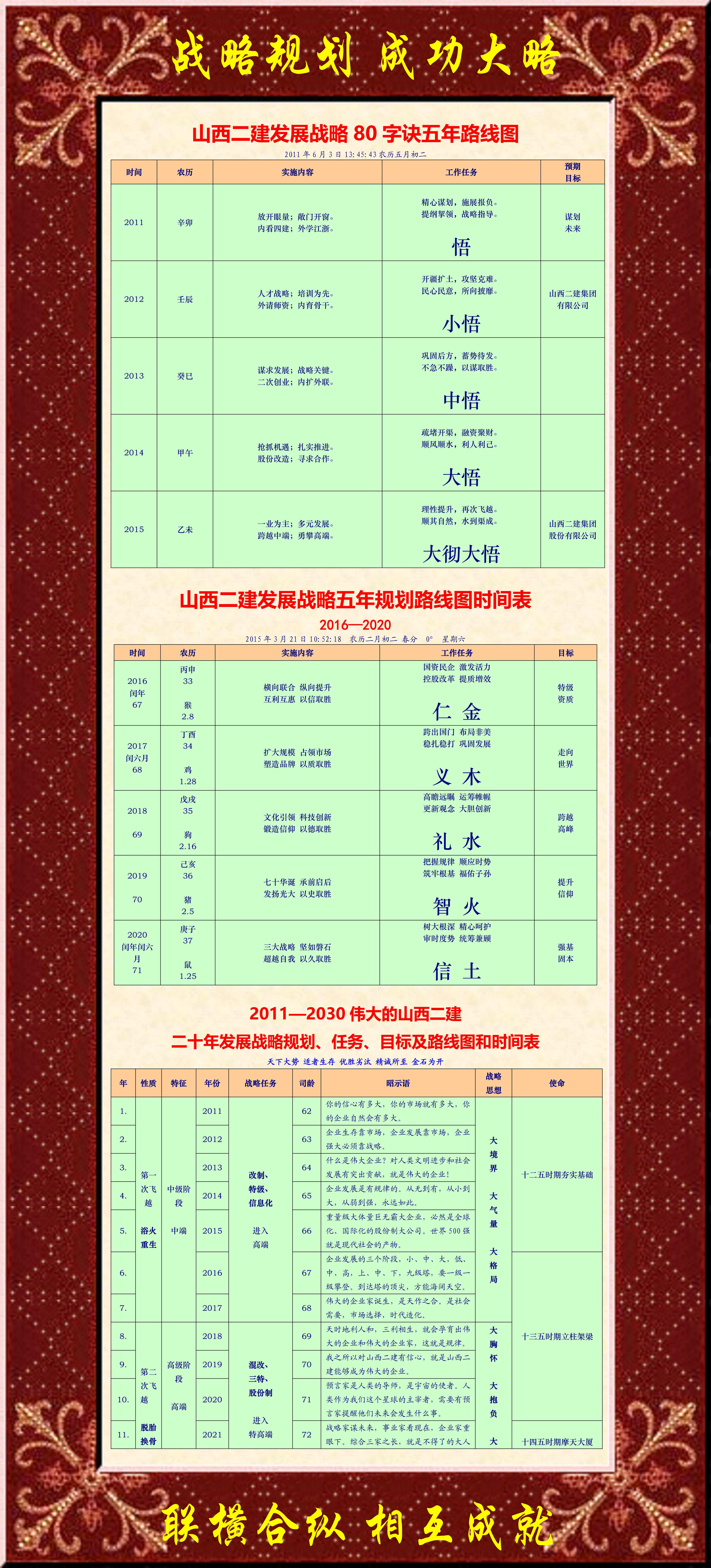 把《2011—2030 偉大的山西二建二十年發(fā)展戰(zhàn)略規(guī)劃、任務(wù)、目標(biāo)及路線圖和時間表》,藍圖已經(jīng)繪就,你要是真正讀懂了,并且照圖去做,你就是未來的大企業(yè)家!