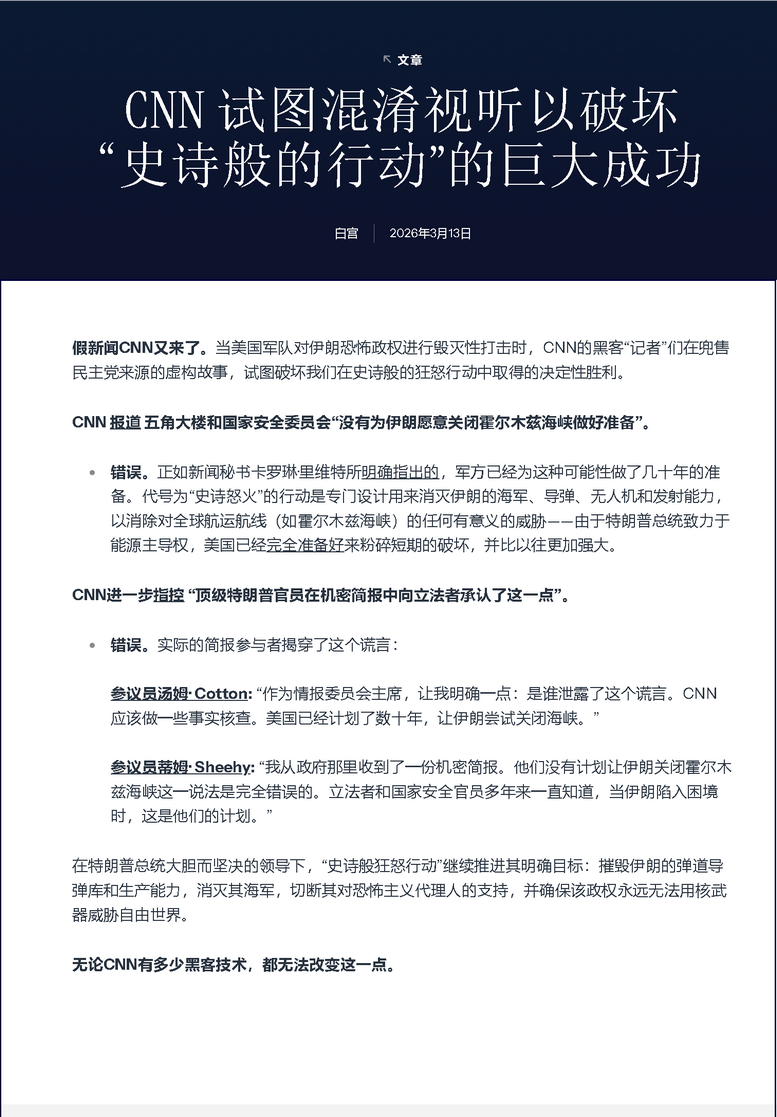 美國的戰(zhàn)士們正在以不懈的力量摧毀伊朗恐怖政權 2026年3月4日