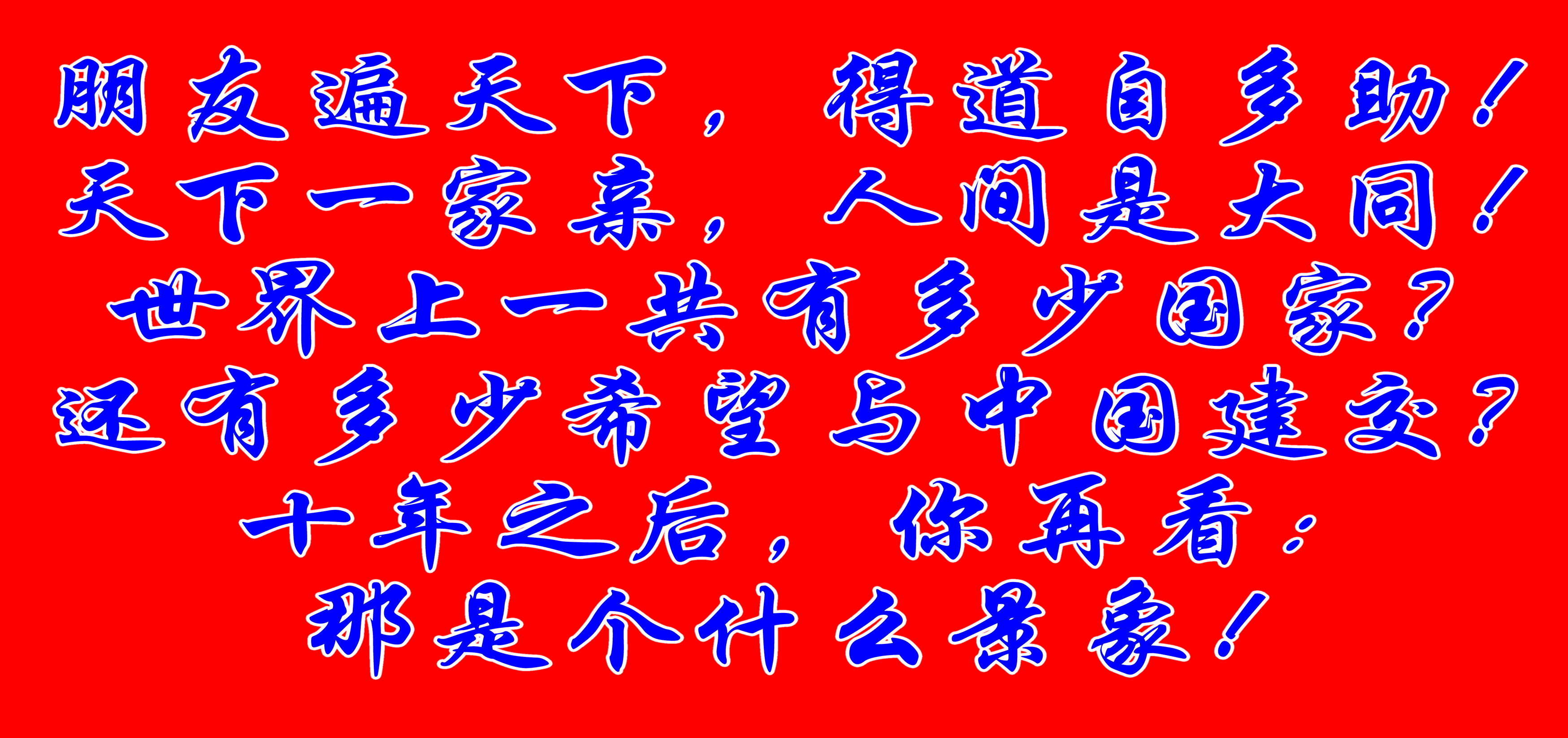 朋友遍天下,得道自多助!天下一家親,人間是大同!