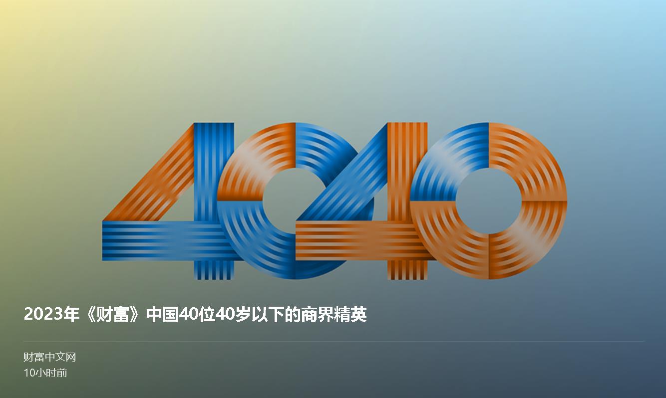 我在等待今天2023《財(cái)富》中國(guó)40位40歲以下的商界精英榜單發(fā)布。由于東西方時(shí)差,晚上九點(diǎn)以后才能一睹真容!