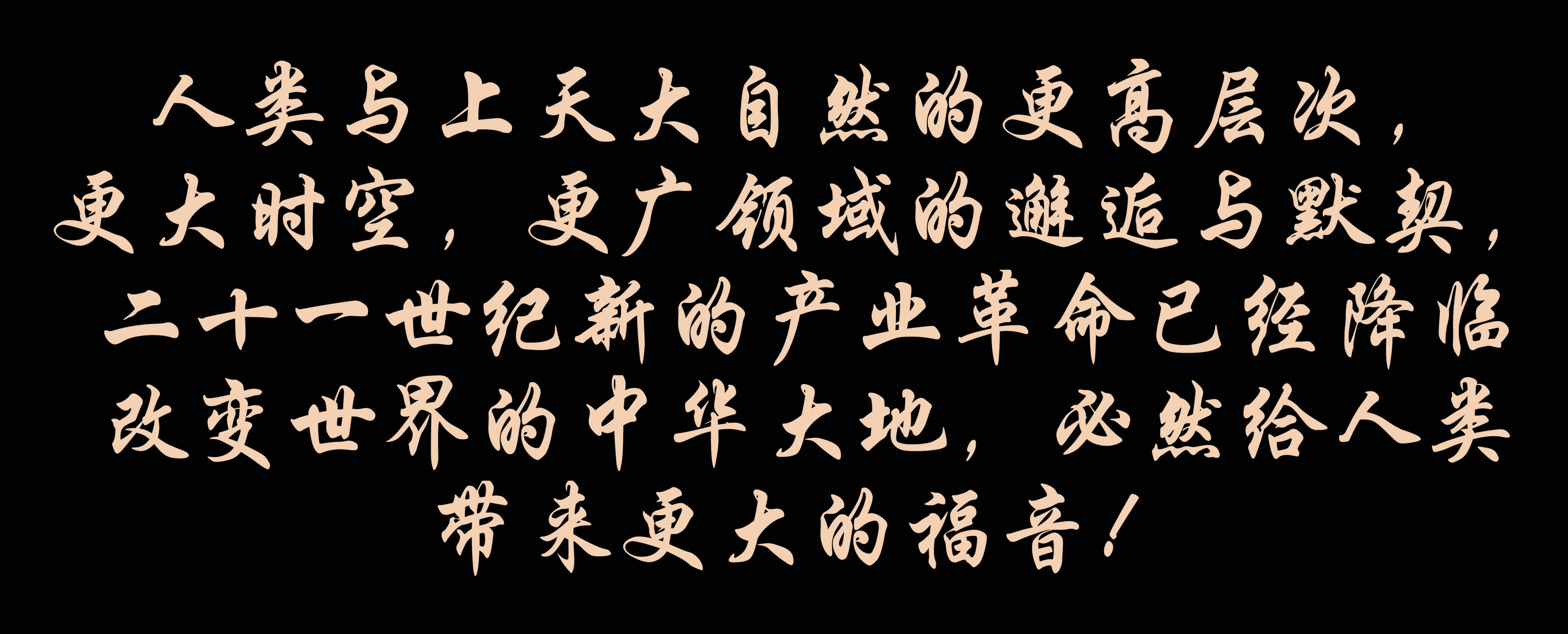 所有這一切,都是人類與上天大自然的更高層次,更大時空,更廣領域的邂逅與默契,二十一世紀新的產(chǎn)業(yè)革命已經(jīng)降臨改變世界的中華大地,必然給人類帶來更大的福音!
