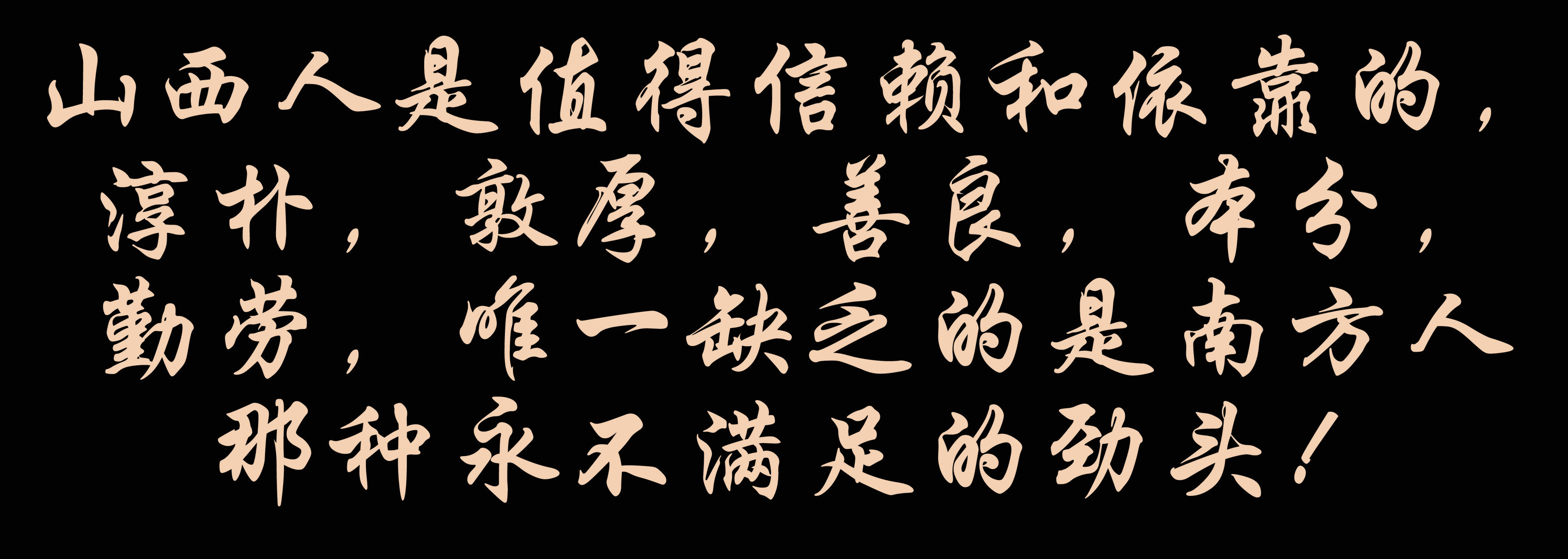 山西人是值得信賴和依靠的,淳樸,敦厚,善良,本分,勤勞,唯一缺乏的是南方人那種永不滿足的勁頭!