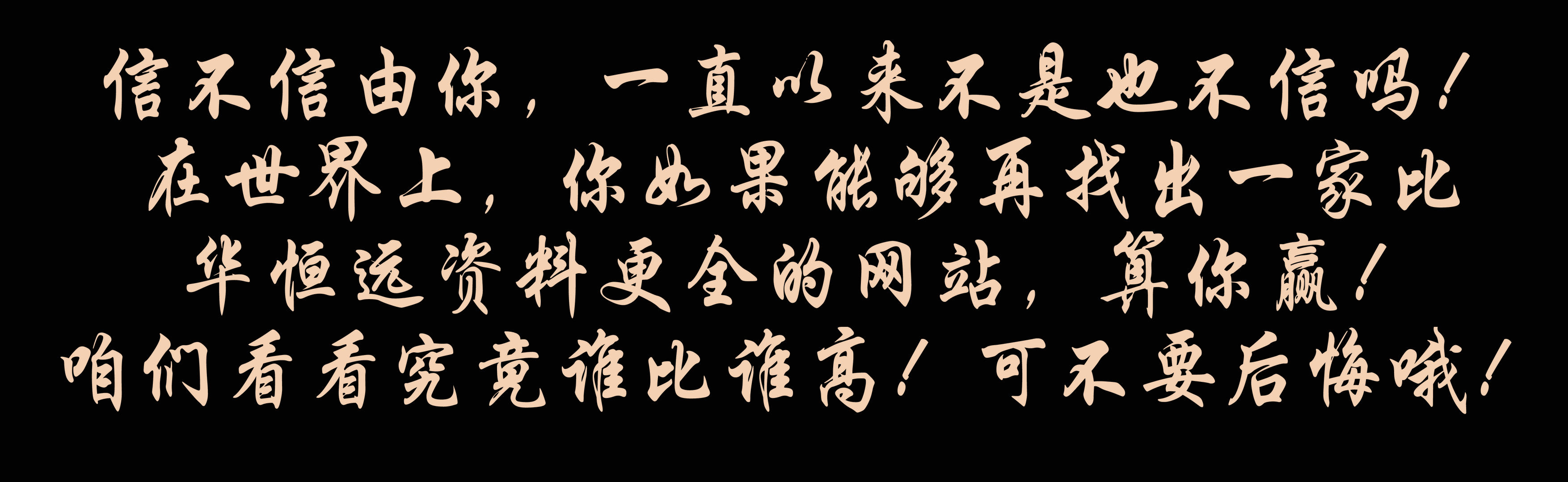 信不信由你,一直以來(lái)不是也不信嗎!在世界上,你如果能夠再找出一家比華恒遠(yuǎn)資料更全的網(wǎng)站,算你贏!