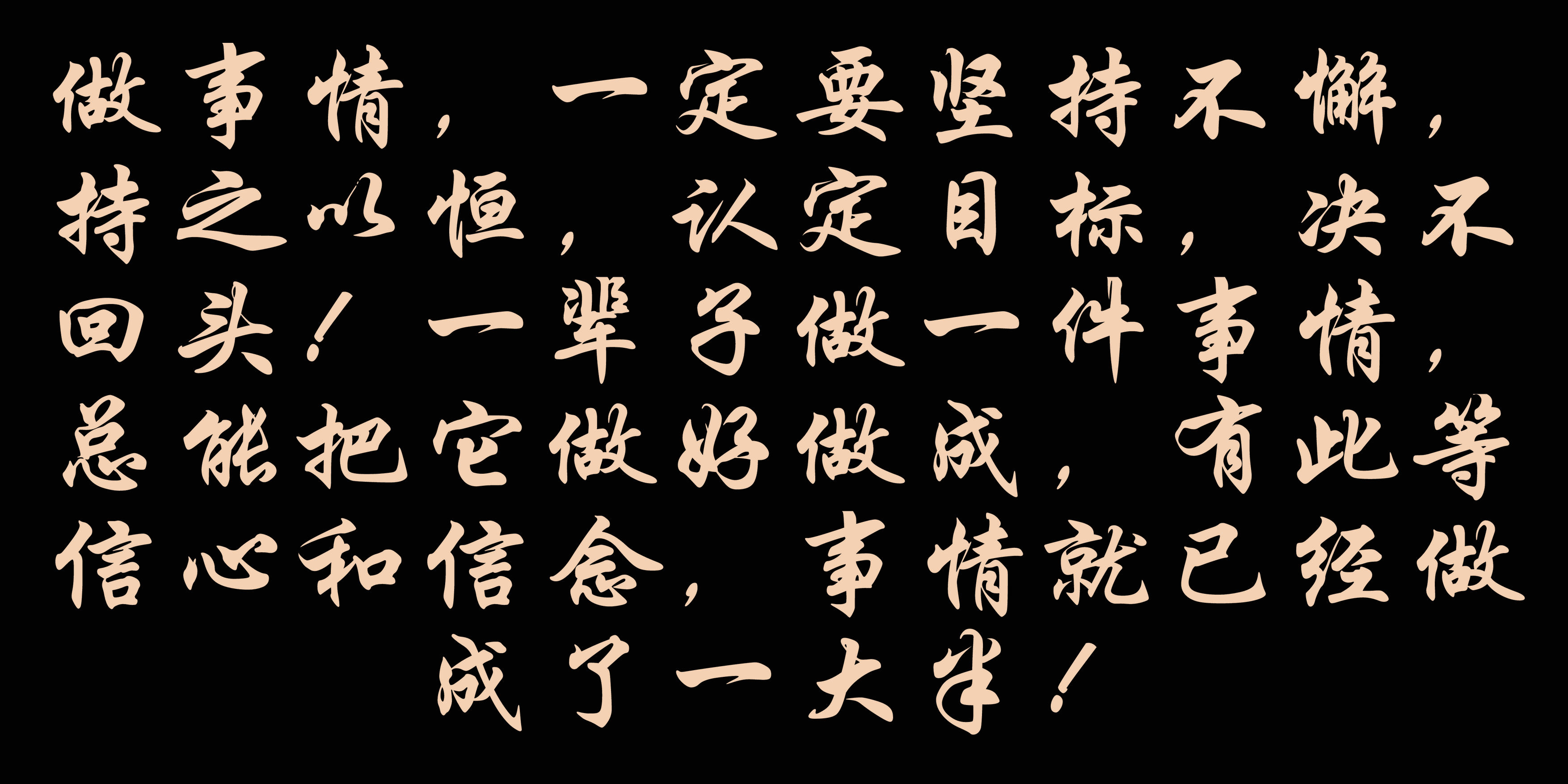 做事情,一定要堅持不懈,持之以恒,認定目標(biāo),決不回頭!一輩子做一件事情,總能把它做好做成,有此等信心和信念,事情就已經(jīng)做成了一大半!