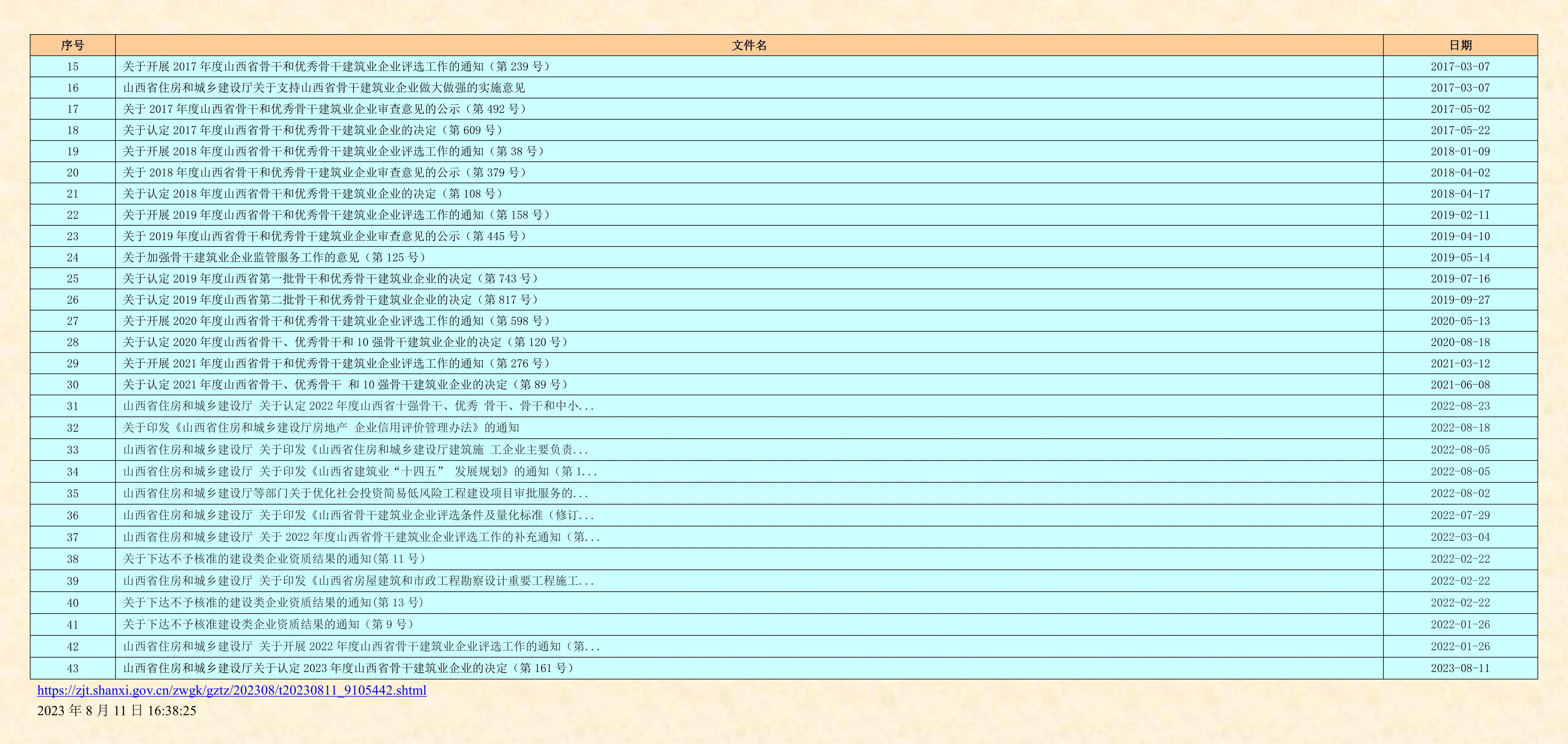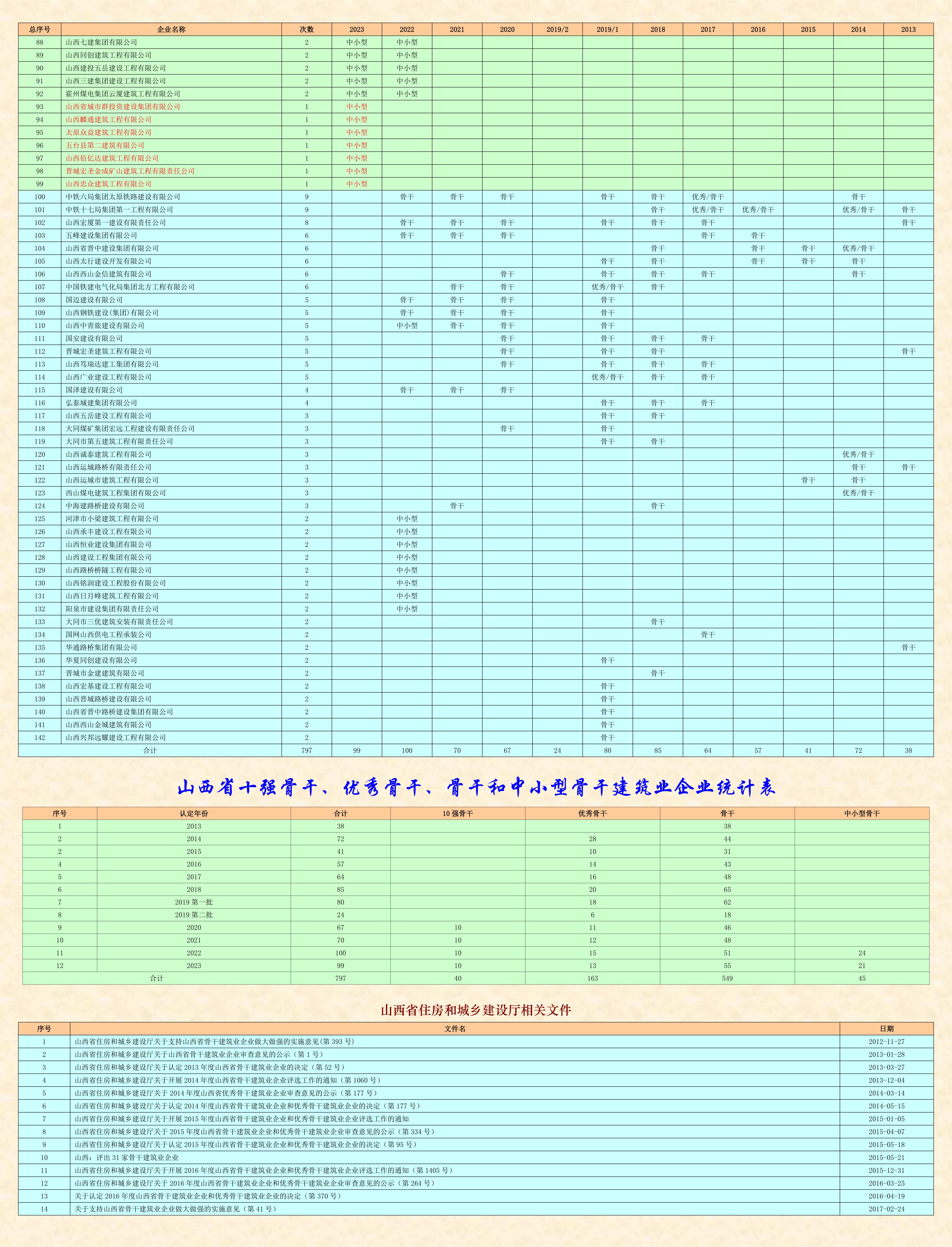 今天,省住建廳公布了2023年度山西省骨干建筑業(yè)企業(yè)名單。這是從2013年開始連續(xù)十一年第12次對全省建筑業(yè)企業(yè)的又一次檢驗(yàn)和認(rèn)定!