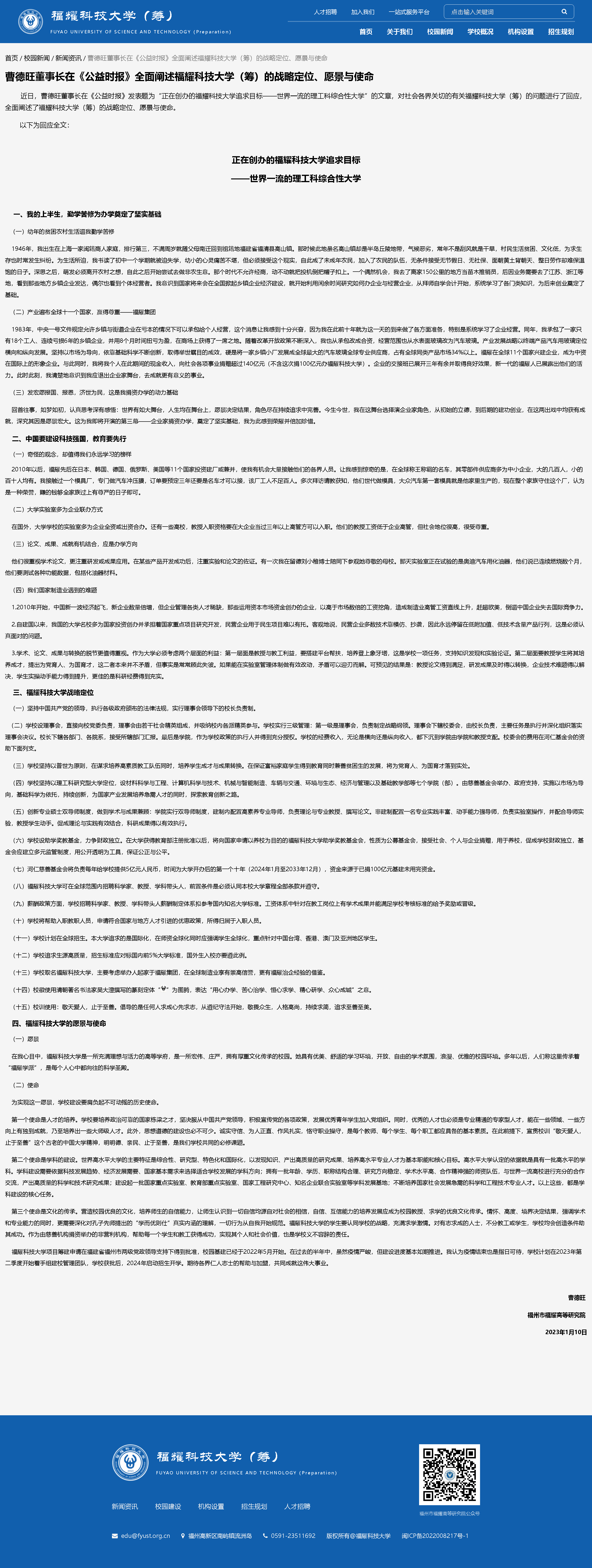 8月9日,福耀科技大學(xué)(籌)第一屆理事會第一次會議召開,曹德旺參加并主持會議。會議審議研究了《理事會章程》、《理事會議事規(guī)則》、《大學(xué)章程及辦學(xué)方針》、《大學(xué)2023年8-12月份工作計劃》等9項重要議題,并決定聘請中國科學(xué)院梅宏院士為福州市福耀高等研究院/福耀科技大學(xué)(籌)校長。