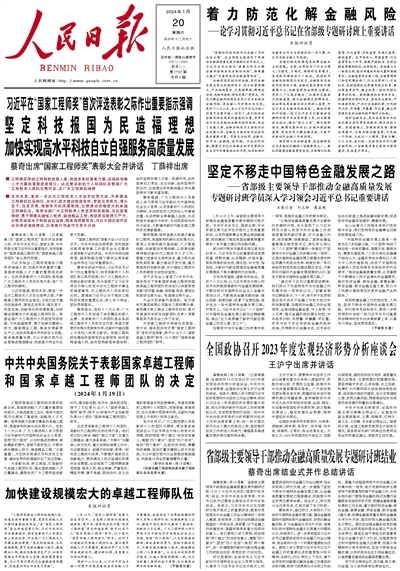 《 人民日報 》( 2024年01月20日 01 版)