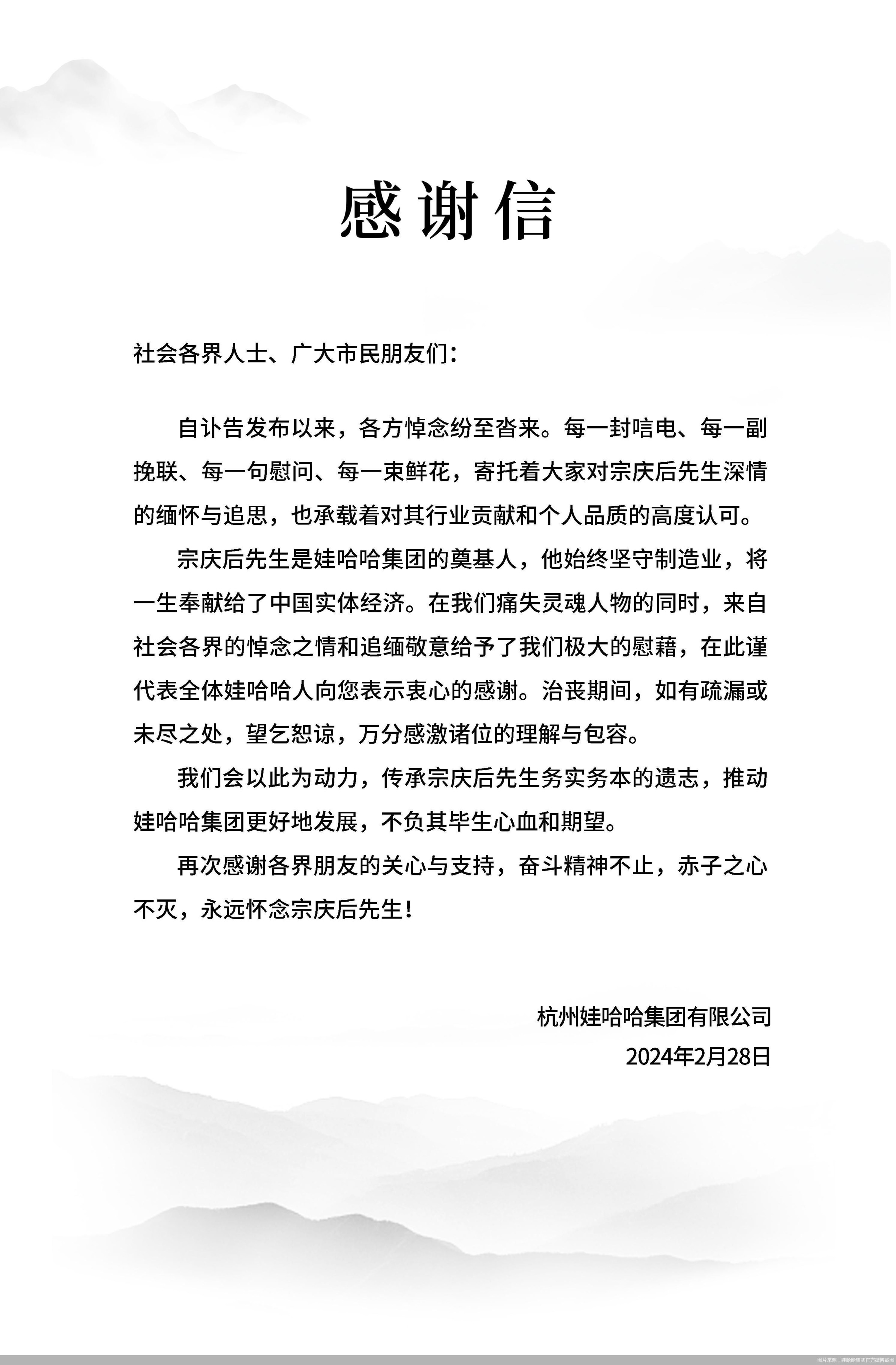 昨發(fā)《感悟一代民營企業(yè)和民營企業(yè)家的宗師——深切緬懷宗慶后同志光輝的一生》于娃哈哈集團(tuán)郵箱,今意猶未盡,再作緬懷,以敬逝者!——大哉大之大者也,老兄宗慶后安息吧!