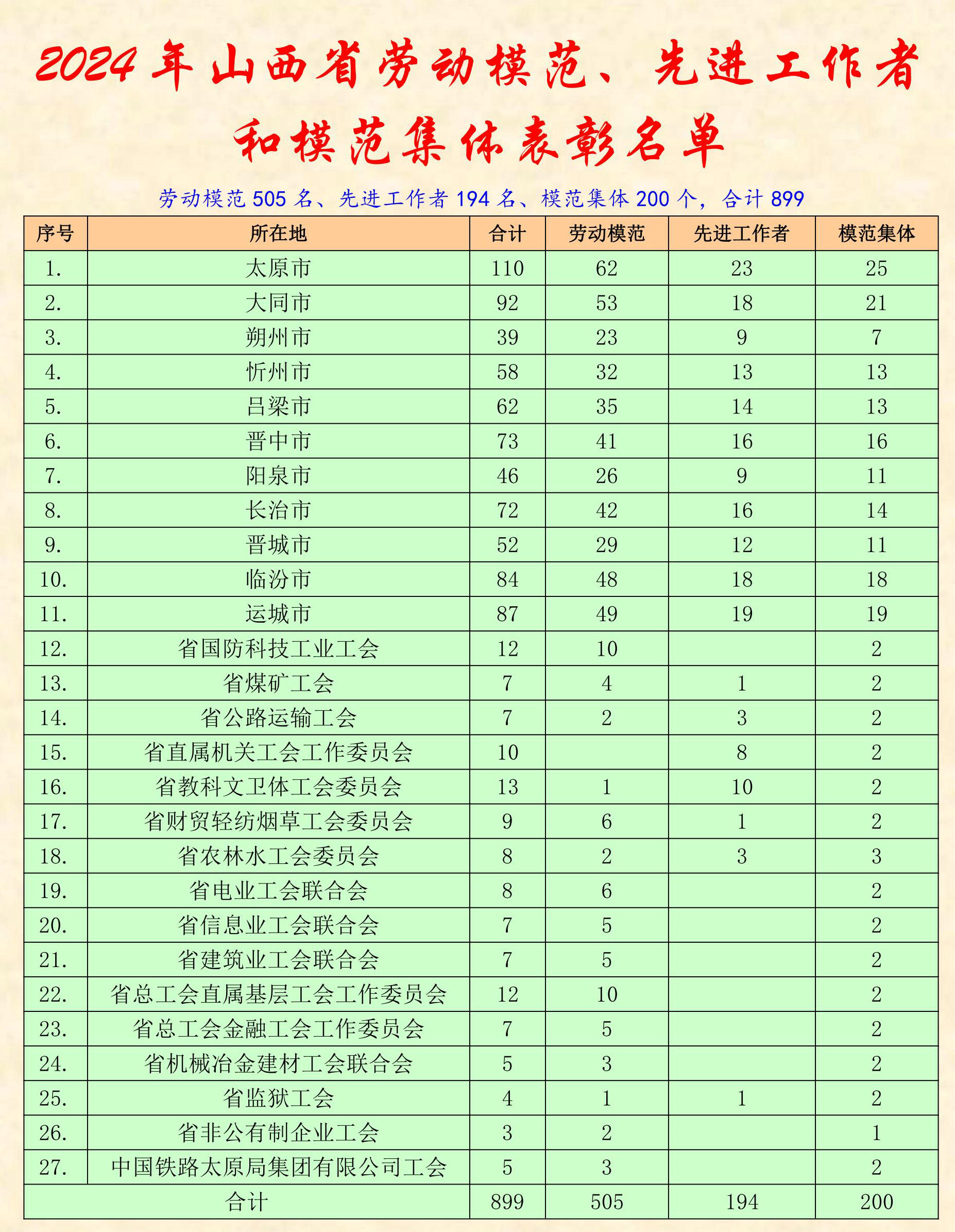 2024年山西省勞動(dòng)模范、先進(jìn)工作者和模范集體擬表彰對(duì)象公示